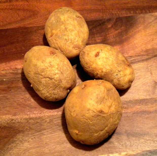 Después de 2 horas, retire la olla del horno y transferir la carne a una tabla de cortar. Cubrir la carne en papel de aluminio y reservar. Agregar las papas, cubierta de la olla y lugar de nuevo en el centro del horno.