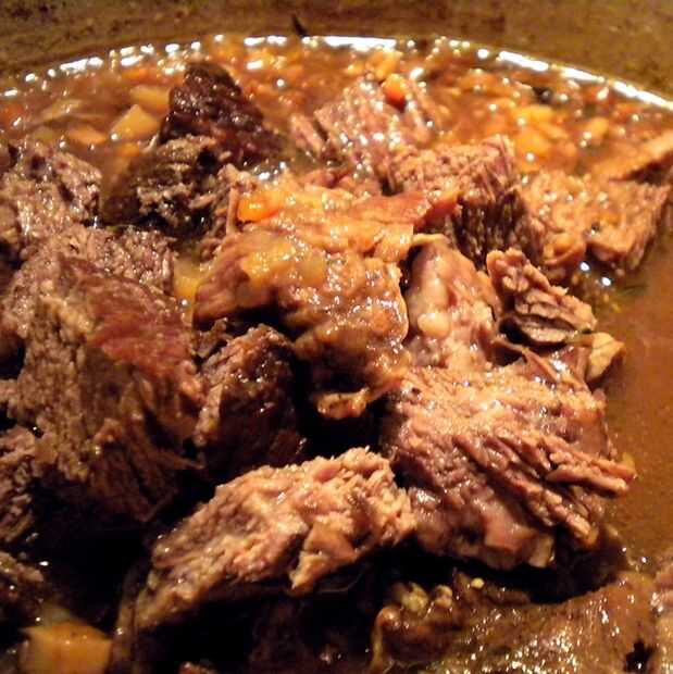 Consejo: La carne puede hacerse 1-2 días antes del montaje de la tarta. Si al hacerlo, guárdelo en el refrigerador. También se puede comer el guiso como es; sólo espesar el líquido parrillas inclinables con un poco de maicena y acompáñalo con un par de cervezas para una comida casera fácil/rústico segura para impresionar a la parienta.