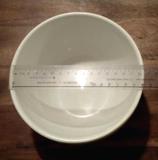 Medir el radio interior de la taza del horno. Asumir el andamio de aluminio cerca de 0,5 cm de espesor y la masa se extenderá a ~0.5 cm de espesor y restar 1 cm de radio de la taza. Calcular la circunferencia (esto será la circunferencia del balón).