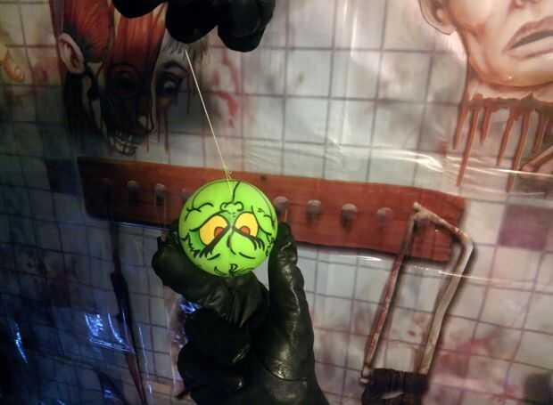 Si aún no lo ha hecho, haga su línea de hilo o línea de pesca alrededor de la bola en la ranura del hemisferio. Dése suficiente holgura por lo que se puede colgar la bola lejos de cualquier cosa que podría en contacto con mientras que rocíe. La Grinch Sphero está listo para su capa clara!