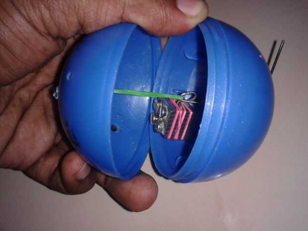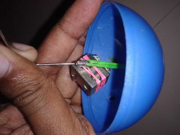 Igual que el realizado para el cilindro. Aquí la pelota es el recipiente de chocolate. El peso del contador es un bloque de terminales de metal de desecho.
