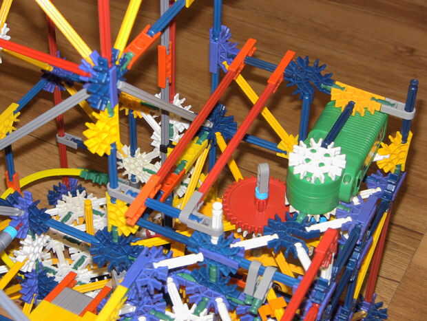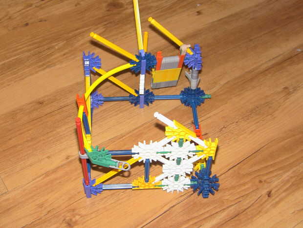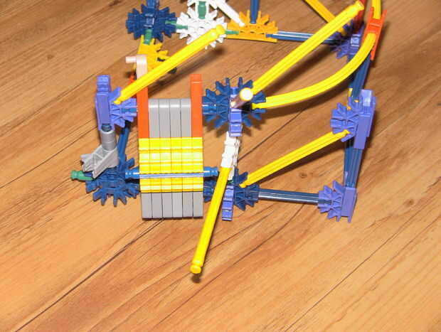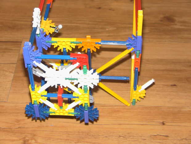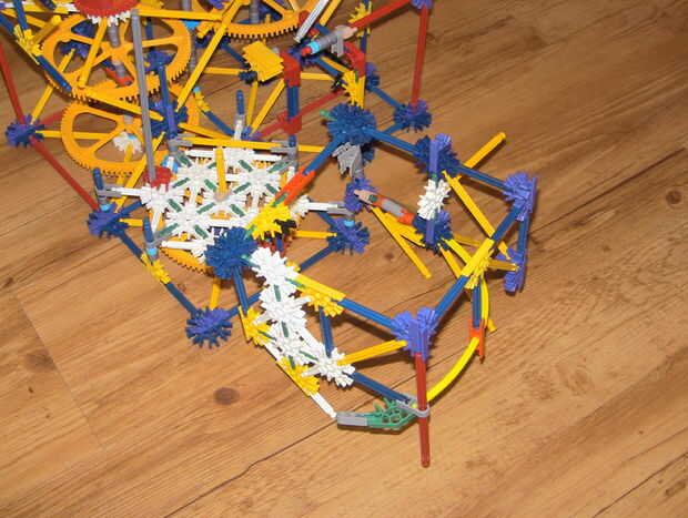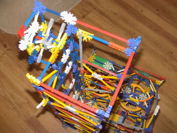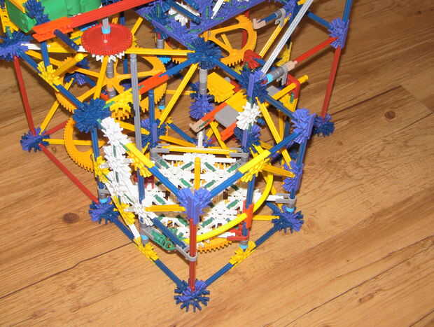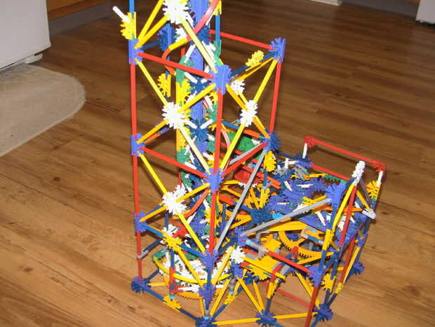 esta máquina de la bola es mi primer modelo que utiliza el suelo blanco para las bolas a la elevación del embudo. El ascensor es un elevador de rueda que es un más grande que generalmente que utiliza muchas piezas pero todavía funciona. Esta máquina