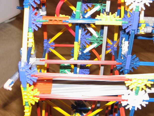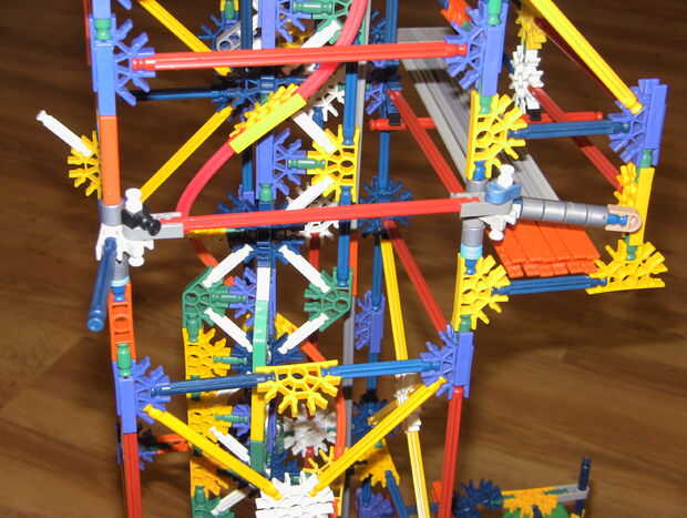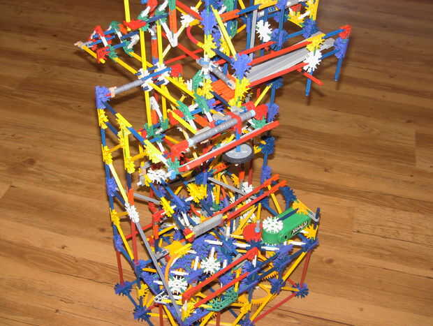 esta máquina de la bola es mi primer modelo que utiliza el suelo blanco para las bolas a la elevación del embudo. El ascensor es un elevador de rueda que es un más grande que generalmente que utiliza muchas piezas pero todavía funciona. Esta máquina