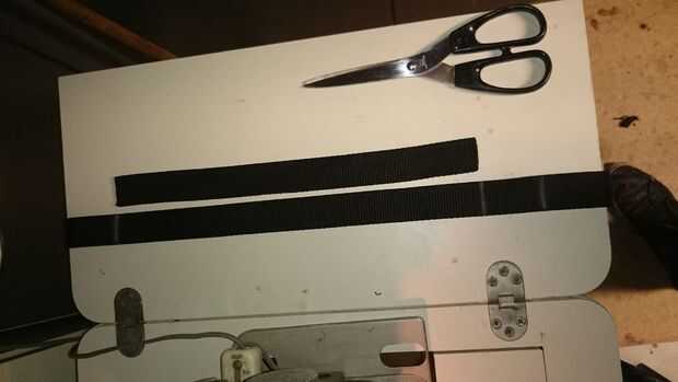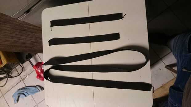 marca el comienzo y los extremos de las tiras de 35 cm en la correa de 110 cm, pero con algo de espacio en el medio, para dar la hebilla de liberación de lado algo de espacio.