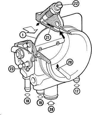17 es una entrada de refrigerante caliente para calentar el cuerpo del acelerador y así evitar la condensación de combustible en frío;