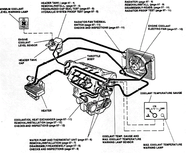 Sensores e interruptores: algunos coches sólo tienen un peligro ligero conectado a un interruptor térmico en el cuerpo de la bomba. Más han conectado un interruptor térmico y un emisor de temperatura de resistencia variable para un indicador. Hay todavía otro interruptor térmico para el ventilador. Como algunos sistemas funcionan en dos velocidades del ventilador, este remitente puede tener dos juegos de contactos, activar una velocidad más baja cuando la CA está encendido o el motor está demasiado caliente y un segundo juego de contactos, activar una velocidad más rápida de "emergencia".