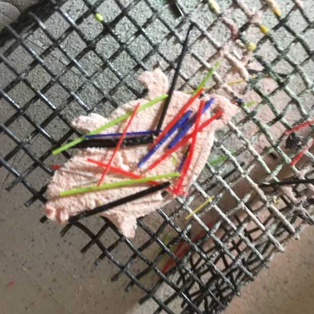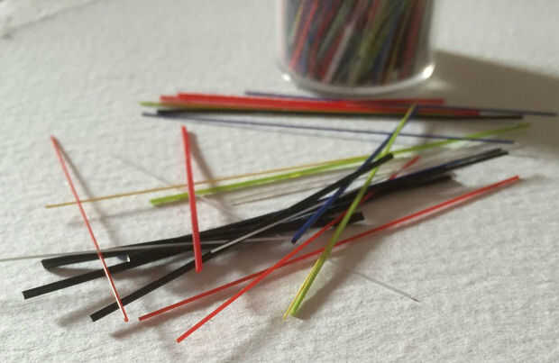 Yo estoy decorando mi cerdo con rayas al azar. Para ello tengo algunas varillas de vidrio fino que quebró (gafas de seguridad sobre!) en longitudes pequeñas y scatttered en la superficie. Usted puede organizar cuidadosamente si desea un efecto específico.