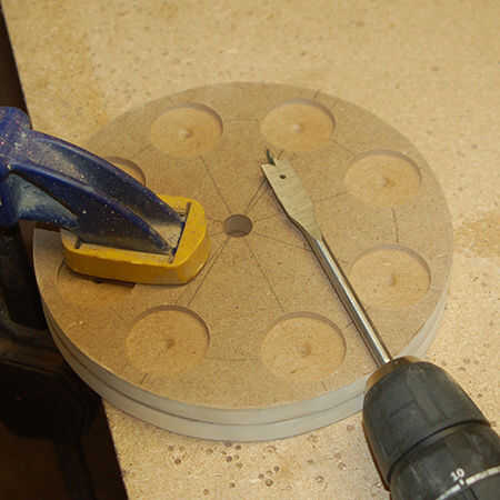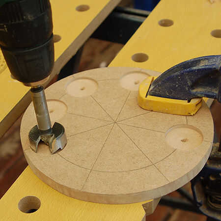 5. un poco de MAD o Forstner de 35mm es lo suficientemente grande para todos los tamaños de botella.