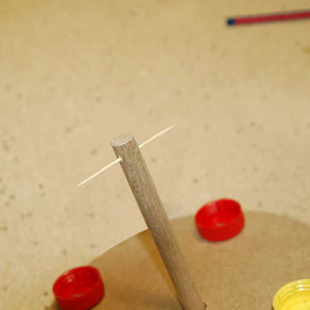 9. Perfore un orificio de 2mm en la parte inferior de la espiga. Colocar el pasador a través del círculo de la parte inferior e introducir un palillo de dientes. Recorte el exceso.