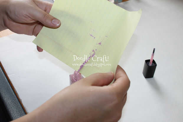 Luego doble el papel al actuar como una diapositiva (embudo) para obtener la sombra en el esmalte de uñas...