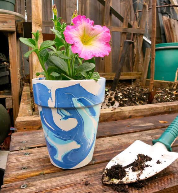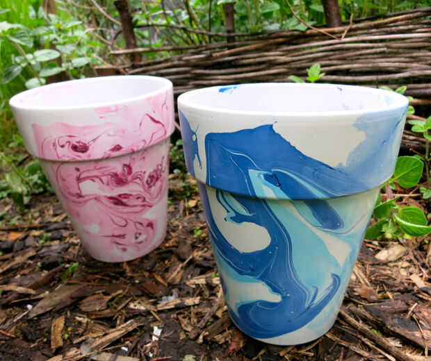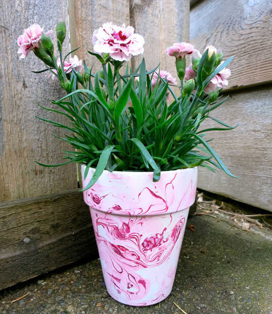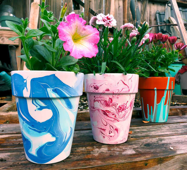 Estas macetas de esmalte de uñas de mármol haría una adición única y colorida a su patio trasero, jardín o casa!