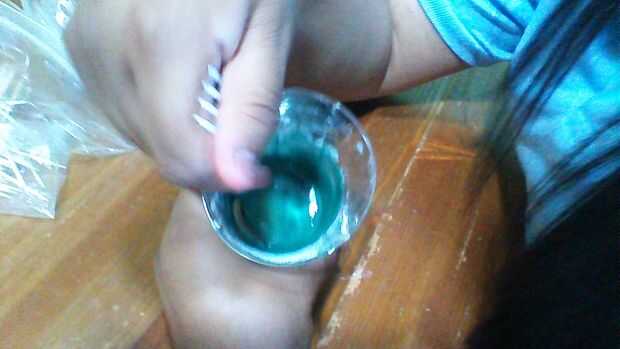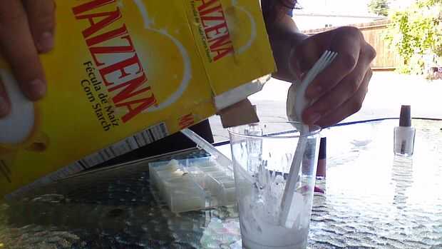 1. Combinar partes iguales Maizena * y la capa superior de polaco en la Copa claro. Mezclar bien con la stirrer.*