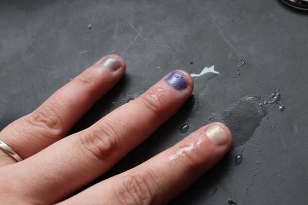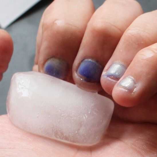 Este esmalte de uñas será el color base normal cuando está en sus uñas, pero en la botella o cuando queda expuesto al frío se volverá el color del pigmento. Mina se vuelve azul cuando toca agua a temperatura ambiente.