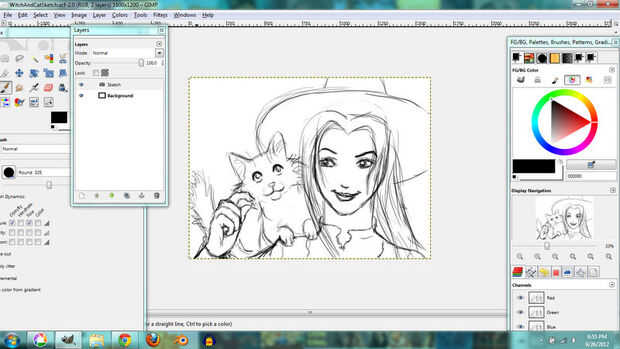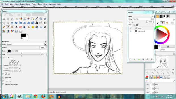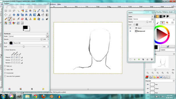 He comprobado "Opacidad" y "Tamaño" bajo "Presión" en la configuración de pincel y con el valor por defecto redondo cepillo, comencé a esbozar mi foto. El bosquejo no tiene que ser perfecto, pero jugaba un rato hasta que fui feliz con él.