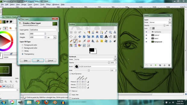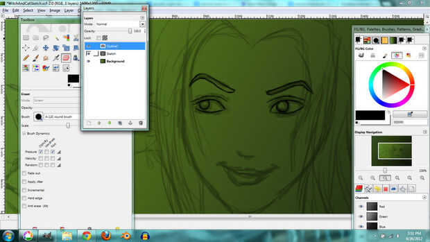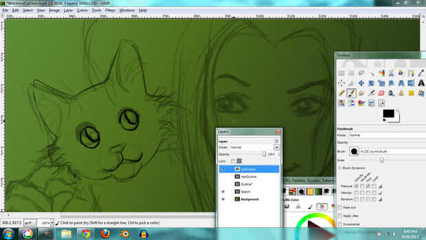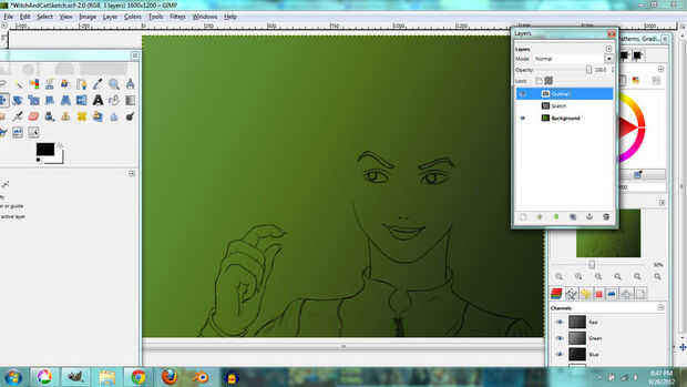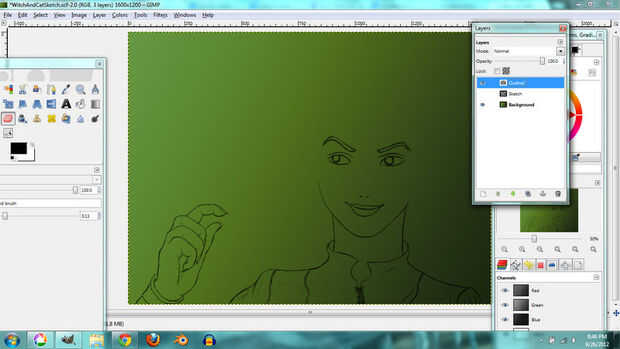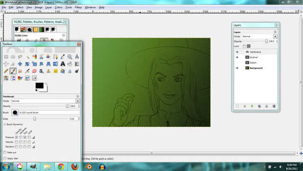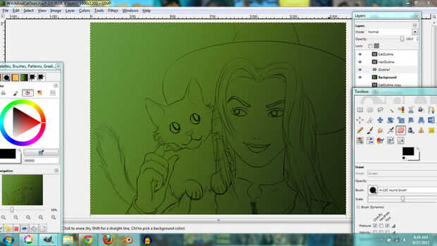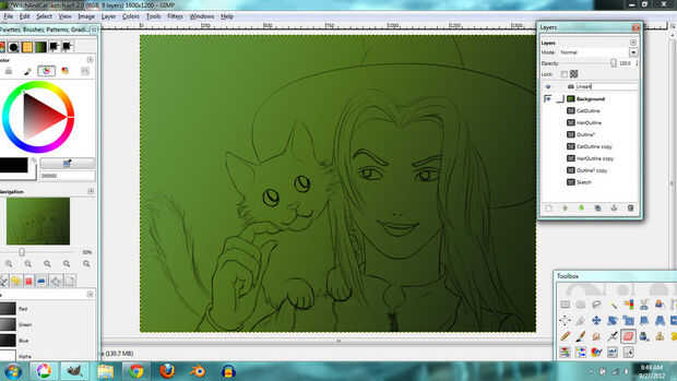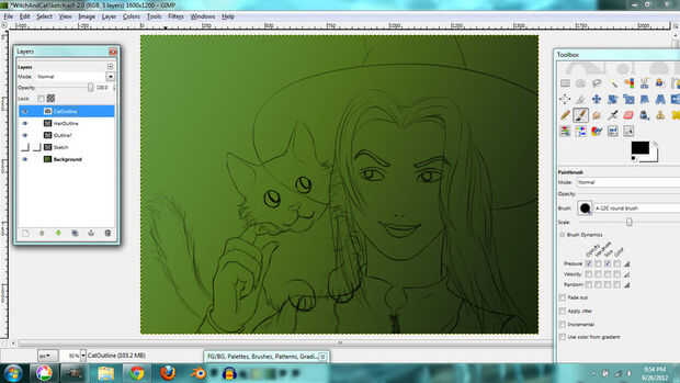 The next thing I did was outline my drawing. Bajar la opacidad de la capa de dibujo al 40%, entonces crea una nueva capa para el contorno. Mire a través de las imágenes para obtener mayores instrucciones. :)
