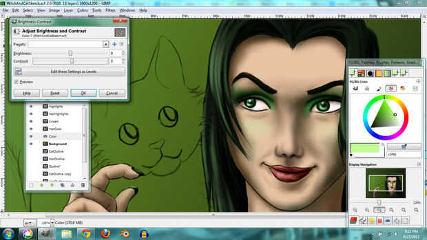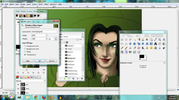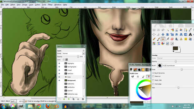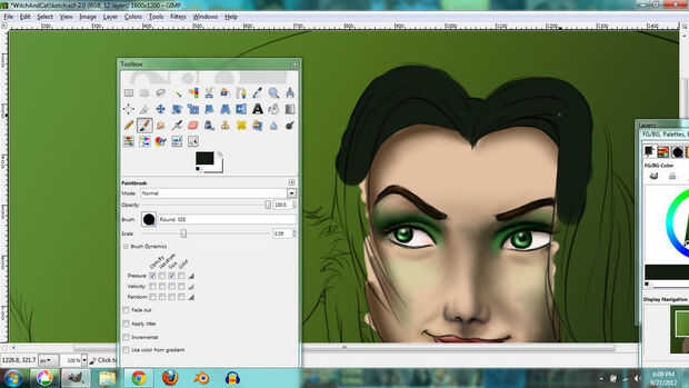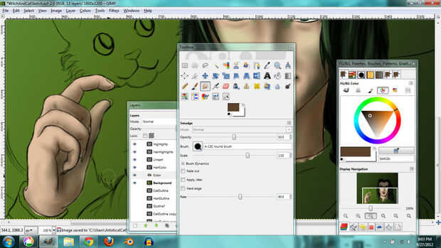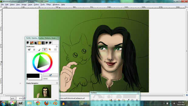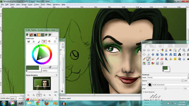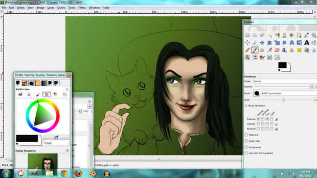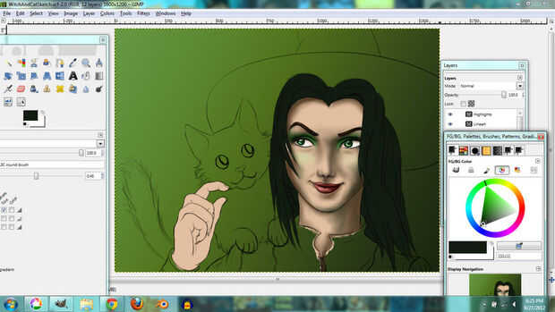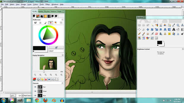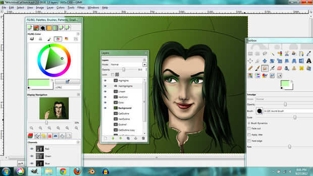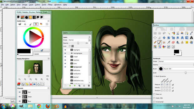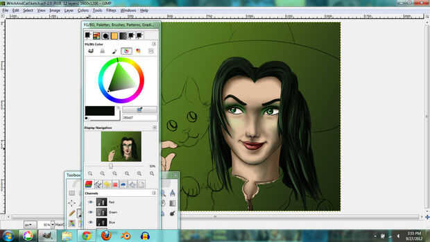 I used the same techniques for the hair. En lugar de tonos de gris, usé tonos de color verde grisáceo que le dio el pelo un tinte verde.