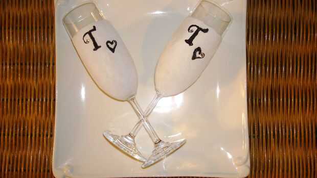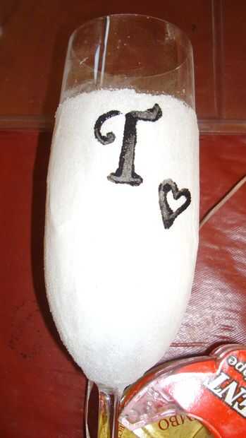 cómo grabar tus propia mano dibujado-mire "tostado copas" para tu boda!Lo que usted necesita:-un conjunto de flautas de champán - son de un conjunto de cuatro de walmart. Quedaron atrás por nuestro viejo compañero, pero incluso si había comprado