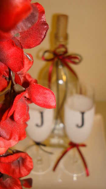 cómo grabar tus propia mano dibujado-mire "tostado copas" para tu boda!Lo que usted necesita:-un conjunto de flautas de champán - son de un conjunto de cuatro de walmart. Quedaron atrás por nuestro viejo compañero, pero incluso si había comprado