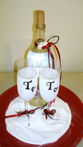 finalmente pretendo grabar nuestras gafas tostados para la recepción, pero Tomé fotos de mi "primer intento" en el cristal de la práctica mi kit de vino, como una montaña. Y realmente, puede hacerlo en el posavasos, espejos, vidrios, marcos de f
