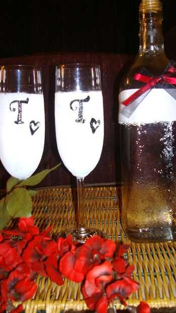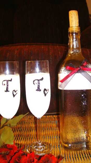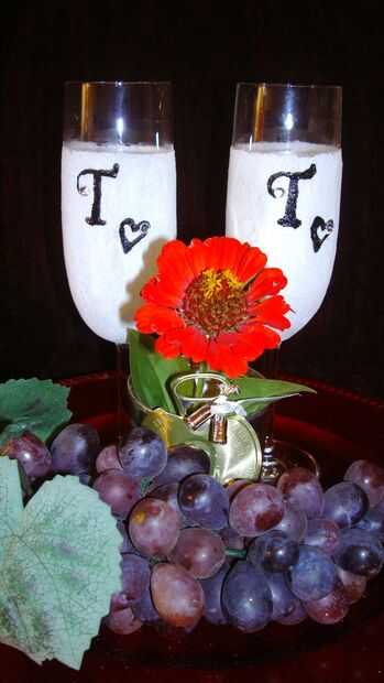 finalmente pretendo grabar nuestras gafas tostados para la recepción, pero Tomé fotos de mi "primer intento" en el cristal de la práctica mi kit de vino, como una montaña. Y realmente, puede hacerlo en el posavasos, espejos, vidrios, marcos de f