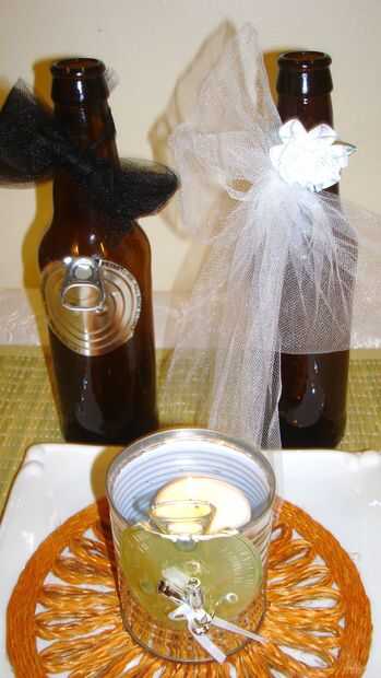 Decorar botellas de vino y la cerveza son una gran manera de ahorrar dinero y todavía tiene una configuración de mesa hermosa.  Recibí mis botellas de una bodega por sólo pedir.  También tengo algunos corchos.  Les comparto algunas de las cosas que hice de ellos, así como latas que decoré.  Puede utilizar botellas como floreros o adornos. Uno de los jarrones son una pintura puede tapa.