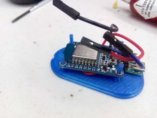 - Una vez conectado el microUSB, se puede montar el Huzzah en las cuatro monturas plásticas.