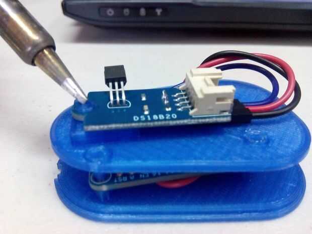 NOTA IMPORTANTE no = asegurarse el ESP8266 toque la pieza plásticas sostiene el DS18B20, debe haber un muy pequeño espacio entre ellas
