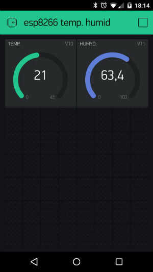 en la aplicación Blynk utilizar widget valor o widget de calibre