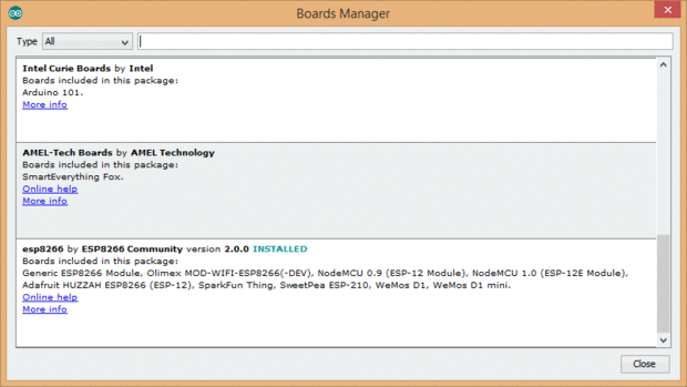 Volver a la pantalla principal y goto herramienta -> tablero -> tableros Gerente Scroll hacia abajo para los archivos de la comunidad de ESP e instalar el paquete.
