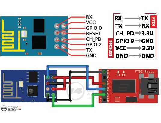 el diagrama para conectar el esp8266 a su adaptador usb a serie en barbecho