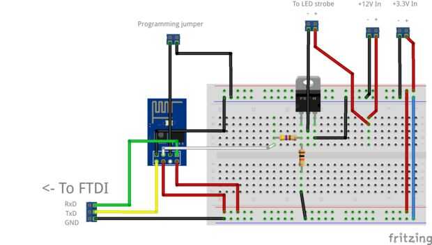 Primero conectar un cable rojo a la VCC (3.3V) y pines CH_PD en el ESP. Entonces un solo cable negro a tierra. En mi caso, estos cables eran unos 6cm (2 1/4 en) largo. Preparar a continuación el conector de 3 pines serie con 3 pedazos de alambre (blanco, amarillo, negro en mi caso). Quería distribuirlos alrededor de la circunferencia de la luz, por lo que son un poco más, unos 8cm (3 in). Suelde el cable blanco al pin RxD en el ESP, amarillo TxD y alambre negro GND. recuerda esta asociación, anote en algún lugar.