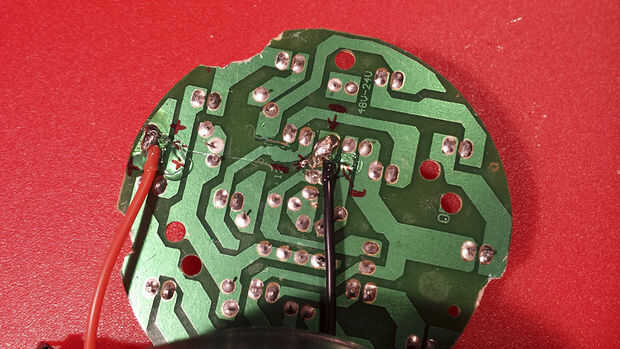 Por último, resoldar dos cables nuevos (~ 6cm, 1 ~ 2/4 en) a la PCB original y fijarlo con un poco de pegamento caliente.