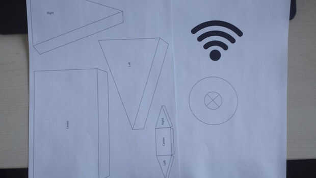 Comienza por imprimir los dos incluidos archivos PDF (también disponibles en el repositorio de Github). Ajuste la escala al 100%. El diseño se basa en la placa que ha de sostener la luz estroboscópica sí mismo y mostrar un logotipo significativo. Elegí el tamaño de papel A5 como punto de partida y a pesar de que resultó un poco más grande, está todavía muy bien.