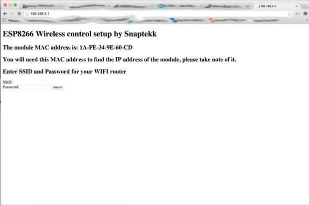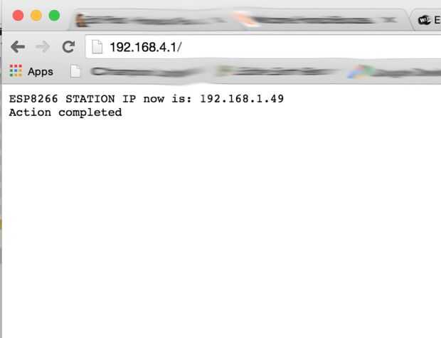 Ahora el ESP8266 se conecta a nuestra red WIFI y tiene dirección IP 192.168.1.49. Sin embargo, si usted no recibe el navegador para mostrar la dirección IP, siempre puede consultar la dirección MAC de la ESP8266 se muestra en la página de ingreso de la SSID y contraseña y el usuario tendrá que encontrar la dirección IP en la configuración del router, dependiendo de qué tipo de router es. Lo haré en el futuro figura la manera de asegurarse de que dirección IP siempre es publicada nuevamente en el explorador.