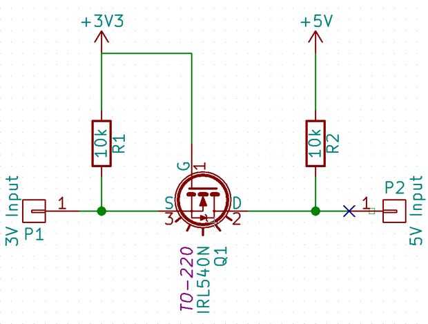 Para la conversión del nivel de lógica no tenía un módulo, así que hice uno con un transistor MOSFET y dos resistencias. Supongo que los módulos que usted compra de aliexpress se construyen del mismo modo. Es bidireccional: cada pin puede ser de salida o de entrada. El circuito se puede encontrar aquí: desplazador de nivel de lógica. He añadido en los esquemas de este paso.