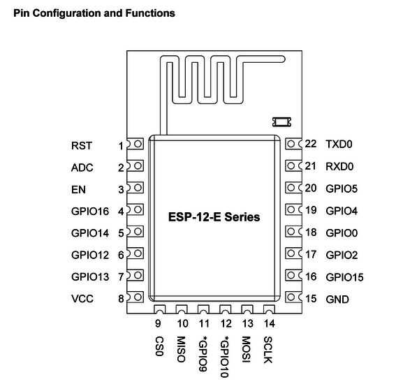 Nota 2: En algun tutorial sobre el ESP-12 fue mencionado que debe levantar el pin GPIO2. Hice eso pero nada funcionó. Cuando accidentalmente dejé GPIO2 desconectado - el dispositivo empieza a trabajar normalmente. Supongo que hay muchas variantes con el nombre ESP-12.