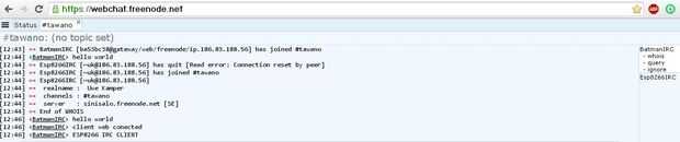 Después de descargar el código para ESP8266. Crear un usuario para conectarse a la freenode.net de sala de chat IRC que usar en este caso que conectar desde un cliente Web, pero se puede de cualquier otro como python, java o android