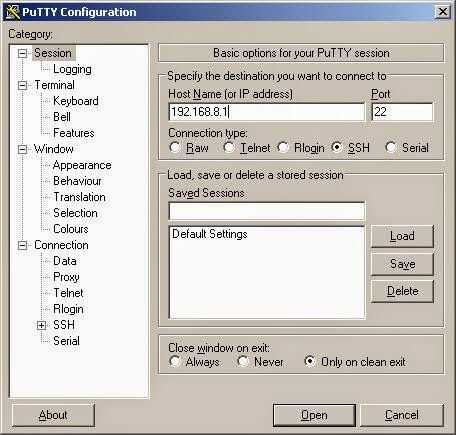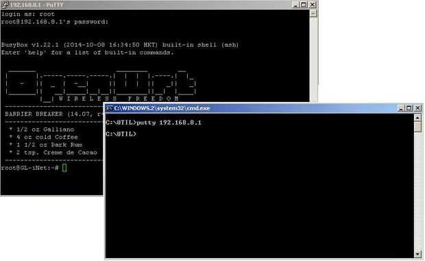 Conectar su PC a GL-INET y la utilidad masilla, abrir una terminal para acceder a la GL-INET (SSH), Puerto 192.168.8.1