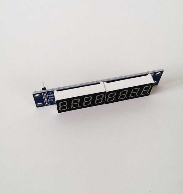 El MAX7219 8 display de 7 segmentos es una manera fácil para mostrar los datos en el segmento. El módulo se comunica través de SPI. Sólo necesita 5 pasadores incluyendo voltaje de la fuente de la tabla en lugar de cientos y cientos de pines como multiplexación. Hice macho a hembra jumpercables de un viejo plano de hdd y cabeceras masculinas y femeninas. Para la primera aplicación instalar la biblioteca "LedControl" y prueba de la pantalla con el "LCDemo7Segment". Con este bosquejo puede comprobar si la pantalla funciona correctamente y obtener algunas sugerencias que eres el código.