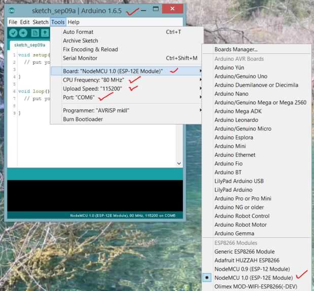1. lanzamiento ESP8266 Arduino IDE, seleccione Herramientas -> Tabla -> NodeMCU v1.0; y parámetros son correctos. Consulte captura de pantalla.