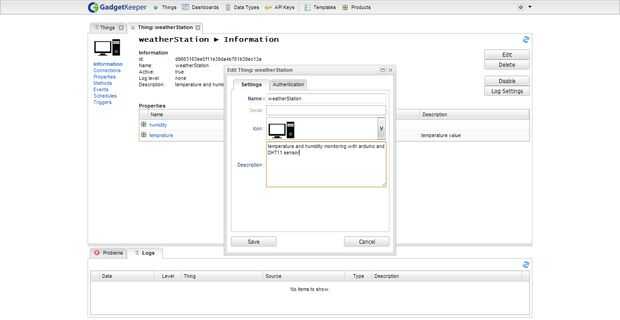 Crear primero la cosa «weatherStation»: