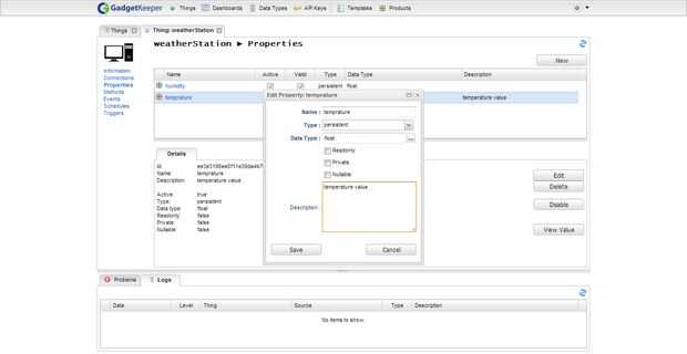 - En la "cosa: weatherStation" pestaña, abrir «Propiedad»