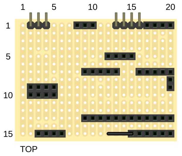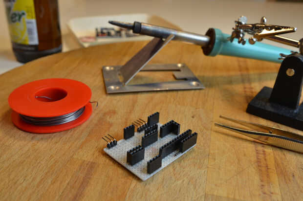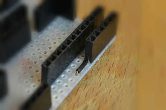 Paso siguiente es soldar los encabezados a la Junta. Cuidar de la cabecera en la esquina inferior derecha. También tienes que soldar el cable en el lado izquierdo en el mismo agujero.