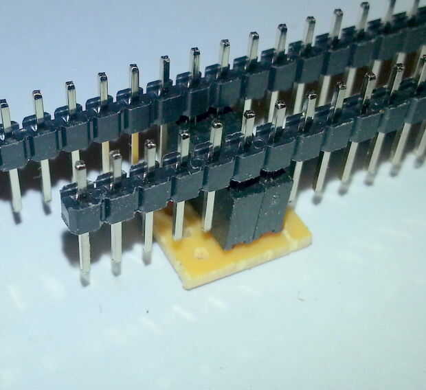 Haber probado con él enchufado en la placa que he encontrado algunos tutoriales para el nano no fue un gran uso del escaso espacio especialmente si sólo utilizando algunos de los pins del nano con el circuito.Así que corté un pedazo viejo de tira Jun