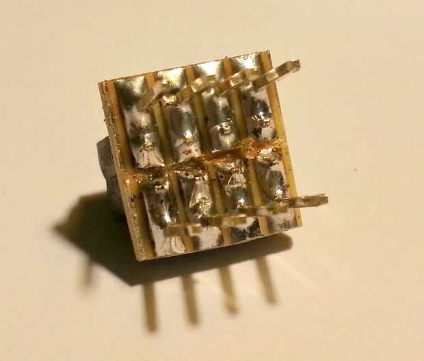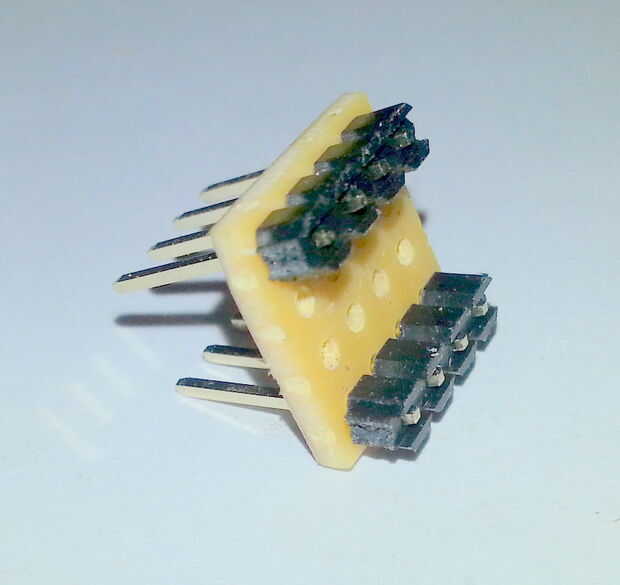 Haber probado con él enchufado en la placa que he encontrado algunos tutoriales para el nano no fue un gran uso del escaso espacio especialmente si sólo utilizando algunos de los pins del nano con el circuito.Así que corté un pedazo viejo de tira Jun