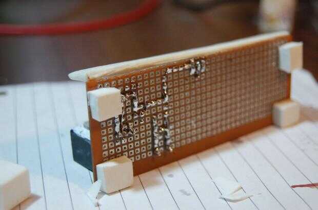 El LM317 tablero de la fuente de energía, aparte de traer abajo el voltaje, también actúa como un soporte para el reloj: