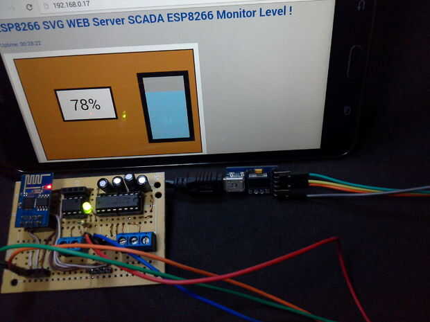 Hemos implementado un web server con el ESP8266 a diferencia de este tiene un scada basado en el mini gráficos vectoriales redimensionables o SVG, ha tomado un servidor de web de plantilla y es internamente creado un SVG que han modificado parámetros