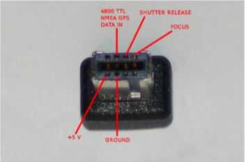 2. el puerto de MC-DC2 que utilicé para mis necesidades de proyecto a ser modificado como solamente los cables para tierra, enfoque y disparar están cableados dentro. Para aquellos que quieran probar el GPS, esta modificación es necesaria, de lo contrario el control remoto, 3 cables son buenos.