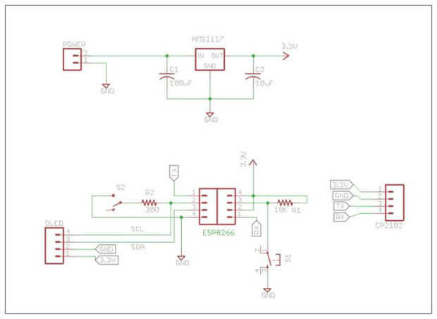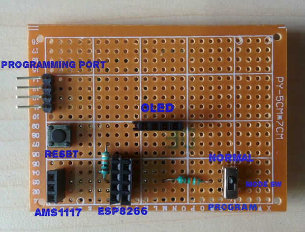 Es todo el circuito se compone de módulo de ESP8266-01, pantalla OLED y algunos otros componentes