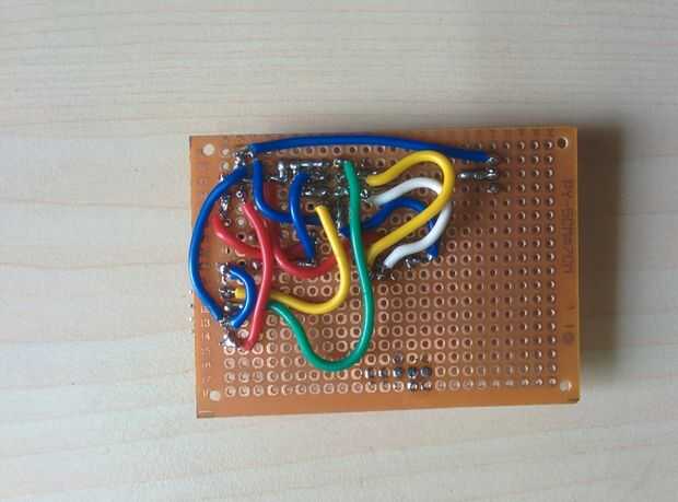 Hacer el circuito en una placa de prototipo según el esquema que se muestra arriba.